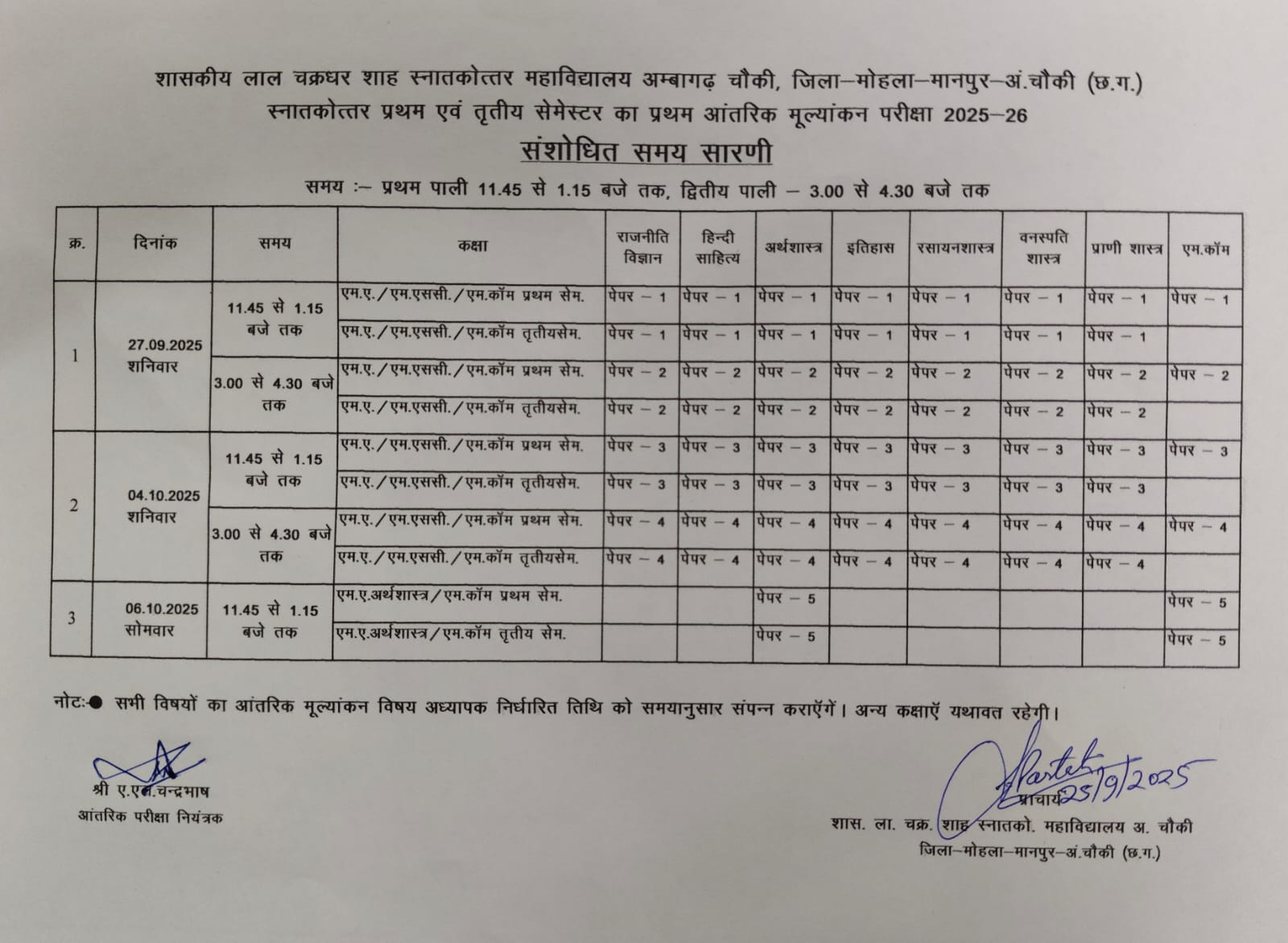 M.Sc. - Chemistry I Semester 2nd Merit List 2025-26
