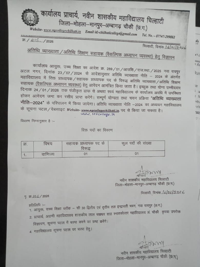 Guest Lecturer Commerce Vacancy 2025-26 (Chilhati College)