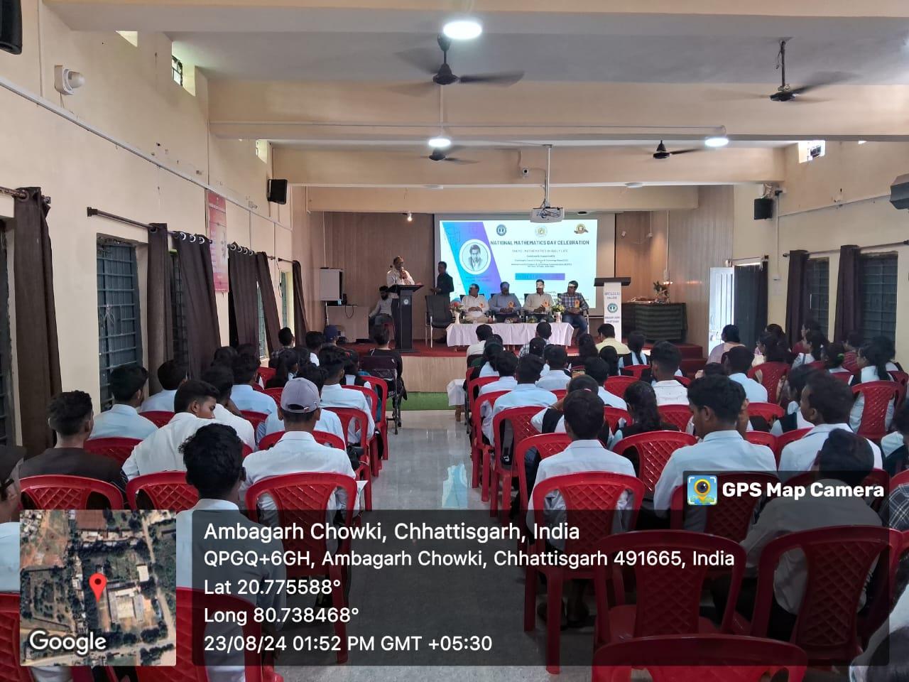 National Mathematics day 2023 was celebrated in the institute on 23/08/2024 . On this occasion special lecture, quiz and poster competition were organised . This program was catalysed and supported by Chhattisgarh Council of Science and Technology Raipur ( C.G.),NCSTC , DST Govt. of India ,New Delhi.